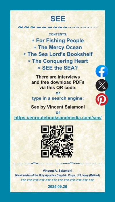“Fr. Salamoni’s unique reflections on Faith and Life in a nautical context have always spoken to me and others who are involved in maritime work and the ministry to the People of the Sea. May this collection be an inspiration to all mariners, and all who live, recreate or work upon the vast waters.” – Doreen M Badeaux, Secretary General Apostleship of the Sea of the United States of America